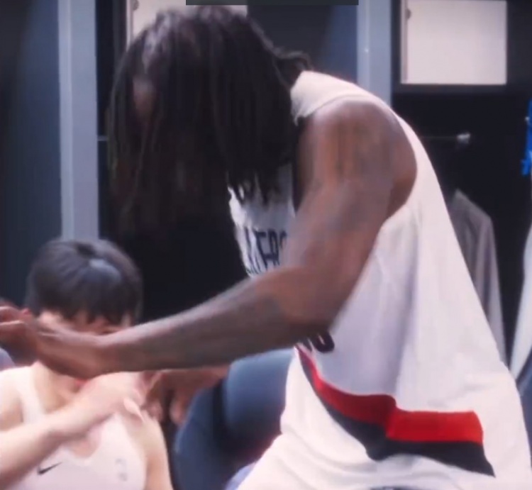 4月11日讯 NBA常规赛,开拓者116-97击败快船,排名升至第八位。赛后在更衣室罗威拉着杨瀚森的手激动地跳舞。